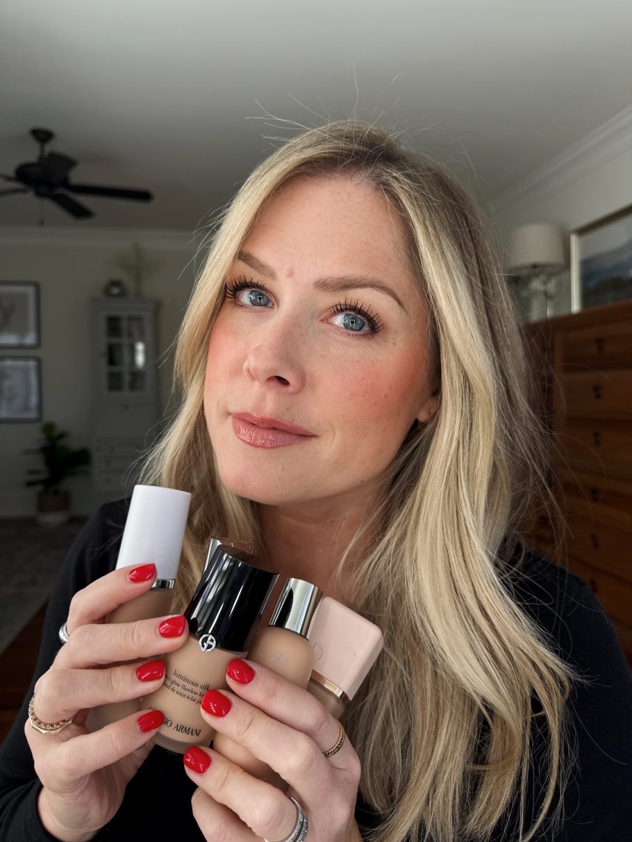 I shared the photo below on Instagram and two people messaged me immediately and said, “2nd from left looks perfect!” and I said,” I know, right? THAT ONE IS ARMANI LUMINOUS SILK!” I thought it was funny that even without knowing which was which, people could just see that it was the best match!
