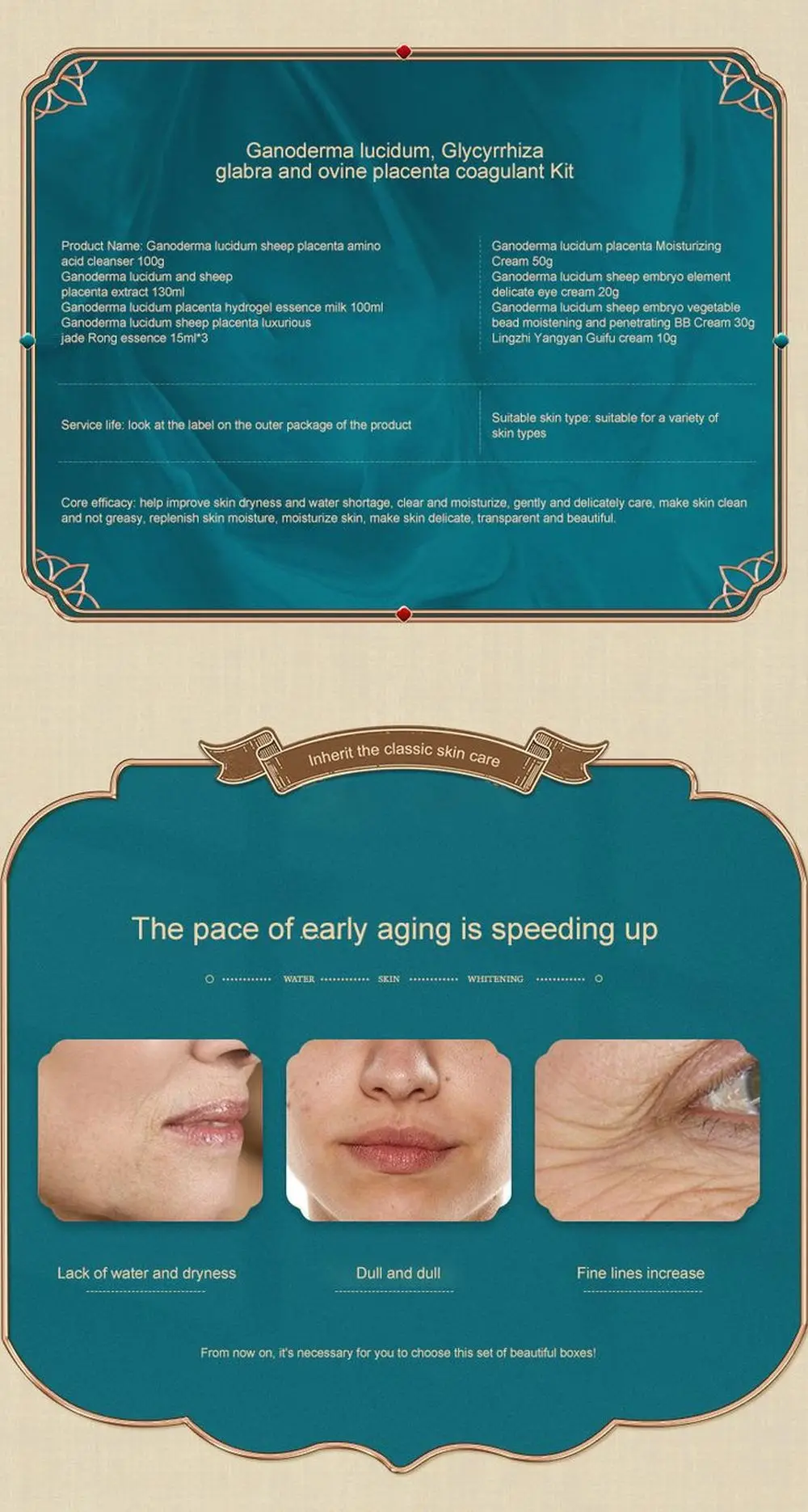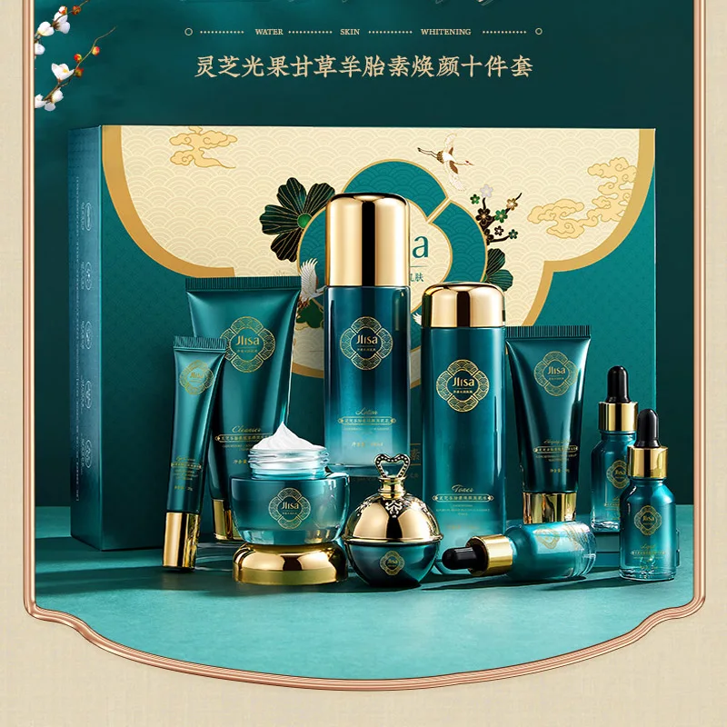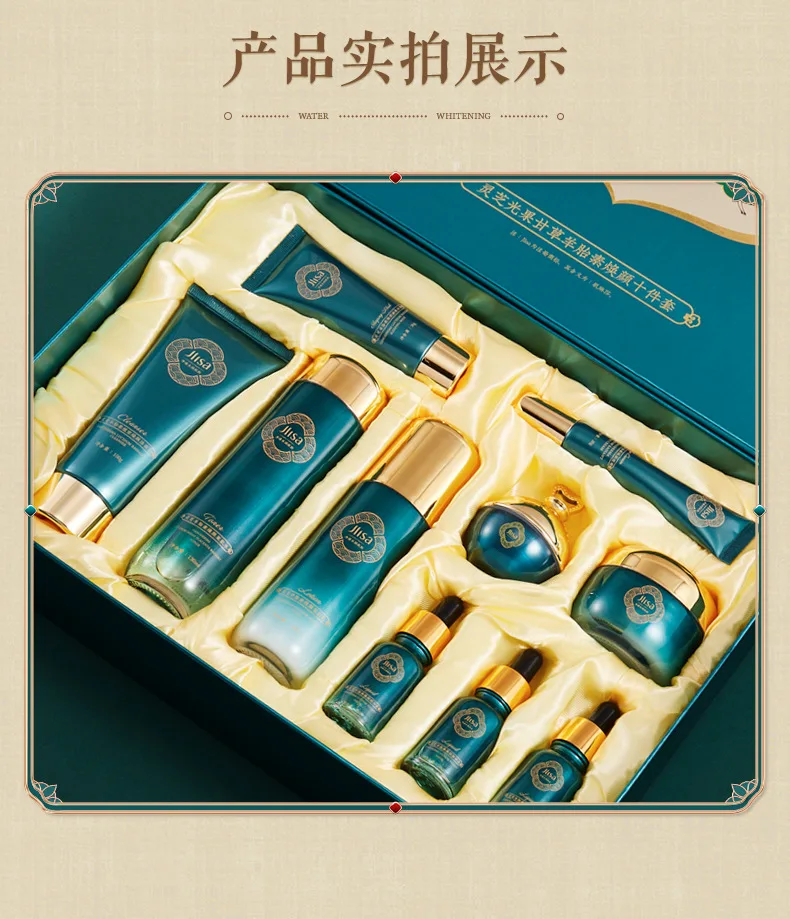 10Pcs Ganoderma Lucidum Face Skin Care Product Facial Cleanser Toner Essence Milk Essence Cream Eye Cream Mask Set Skincare