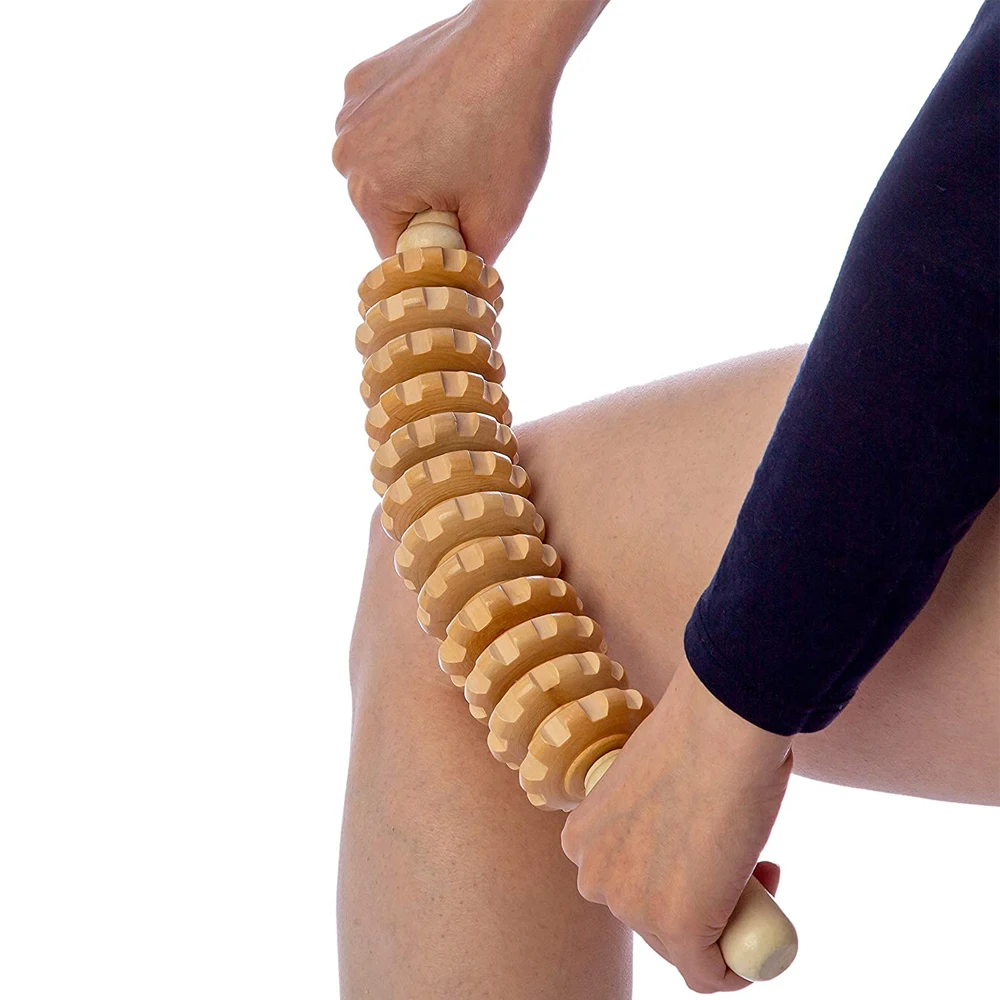 12 wheel Wood Therapy Roller Stick Massage Tool, Curved Designed Maderoterapia Colombiana Massager,Lymphatic Drainage