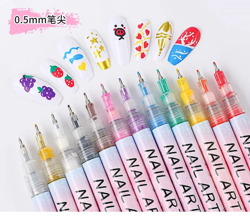 12pcs/Set Nail Art Graffiti Pen Nail Marker Drawing Abstract Lines Fine Detail Floral Design Waterproof Nail Painting tools