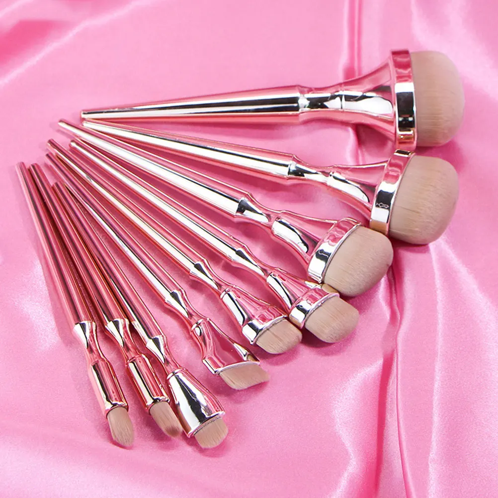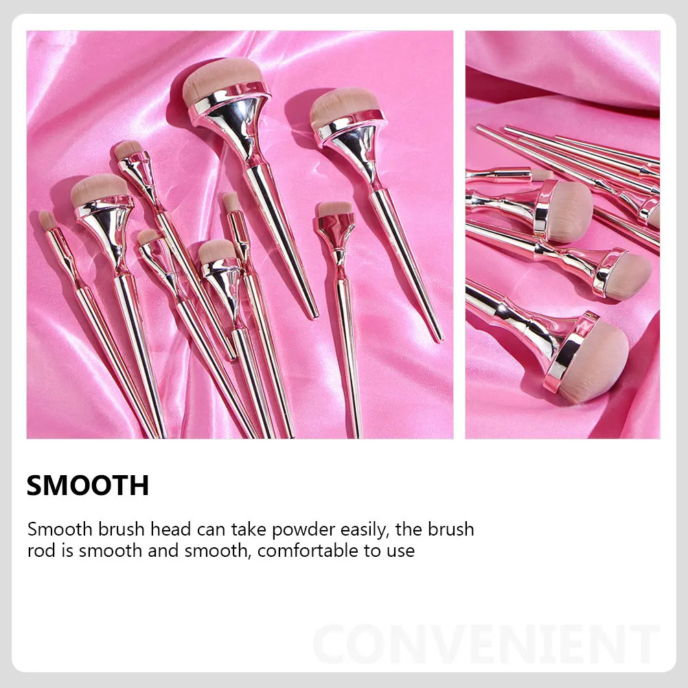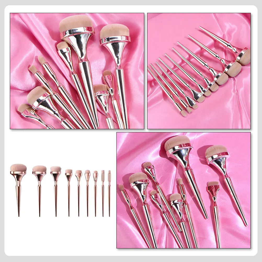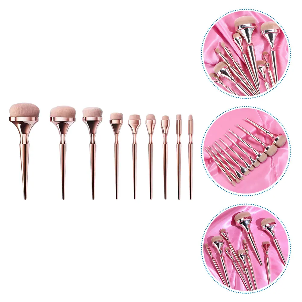 9pcs Makeup Brush Set Portable Professional Eyeshadow Rose Gold Cosmetics Stylish Powder Applicator Durable ABS Fiber Gifts