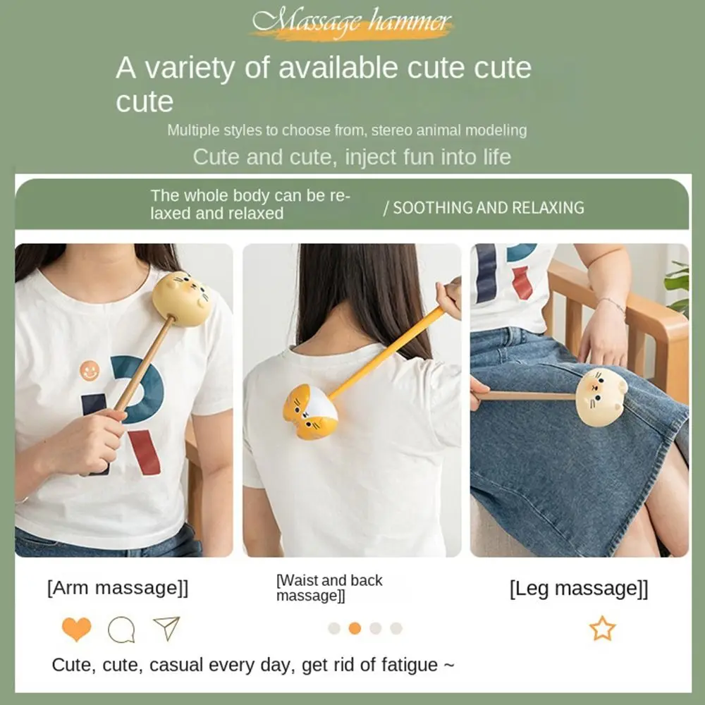Cartoon Cat Knock Massage Tool Cute Doll Round massage head Muscle Massage Stick Elastic Soft Massage Percussion Massager Hammer