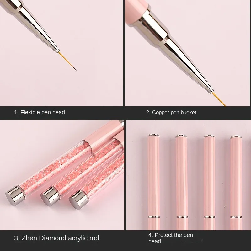 Nail Art Brush Manicure Tools Lines Stripe Flower Painting Drawing Line Brush Pink Nail Art Pen For Nail Design Nail Salon
