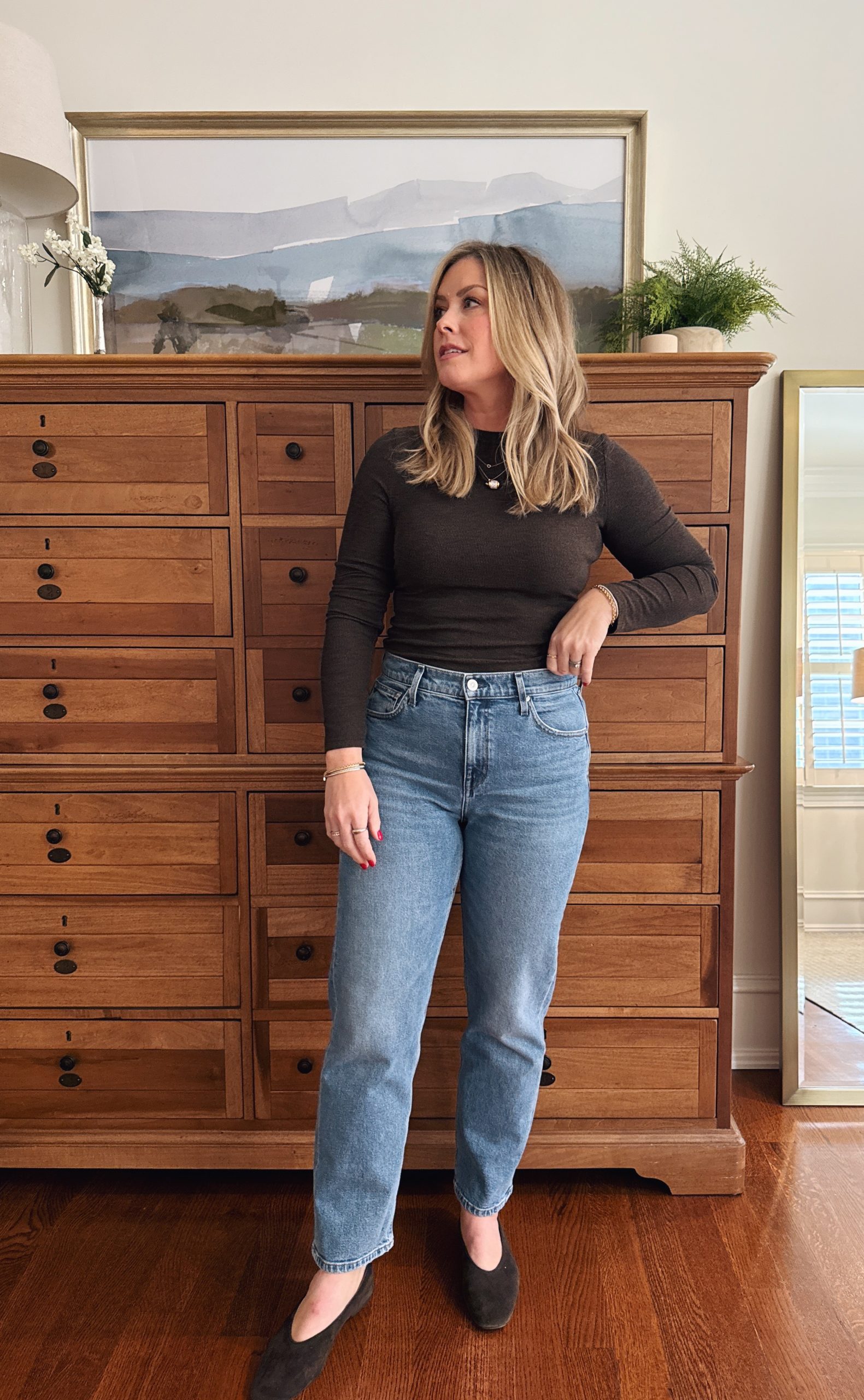 I really believe that a slim straight jean is one of the most timeless, flattering, “works with almost anything” style jeans that look fantastic on everyone. This style of denim may not be the focal point of the outfit, but it also doesn’t take away or distract from a look, whether it’s dressed up or down.